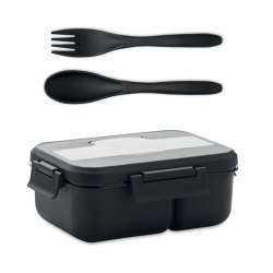 Caixa de almoço de dois andares em PP. Inclui um conjunto de talheres.
