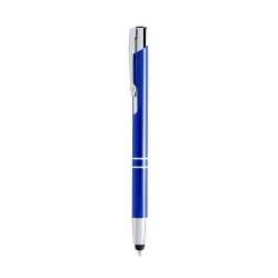 Acabamento em alumínio brilhante. Equipado com uma recarga jumbo e tinta azul.