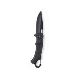 Canivete com lâmina em aço inoxidável de acabamento negro. O cabo é feito de alumínio resistente, garantindo durabilidade e estilo.