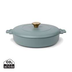As robustas alças garantem uma manuseamento seguro e confortável. O interior texturizado desenvolve uma patina antiaderente ao longo do tempo, facilitando a limpeza e melhorando a experiência de cozimento.