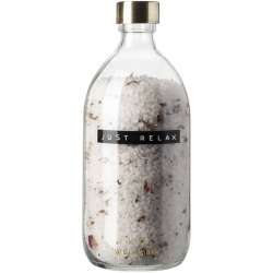 O frasco transparente de 500 ml, com tampa em latão, exala luxo e promete uma experiência de spa perfeita.