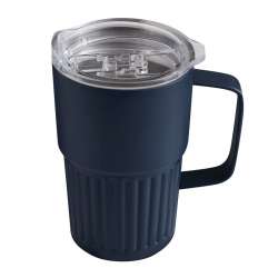 Mug WAVE HOLD, double paroi : intérieur en acier inoxydable recyclé, extérieur en acier inoxydable, avec poignée pratique, couvercle en plastique avec joint en silicone et ouverture pour boire intégrée à glissière, capacité d'environ 450 ml, garde au chaud pendant environ 4 heures et au frais jusqu'à 8 heures, dans une boîte individuelle