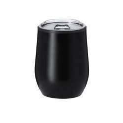 Possui dupla parede e uma capacidade de 330 ml.