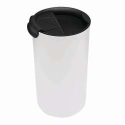 O mug possui um tampa em plástico com uma anel de silicone que assegura um fechamento seguro. A abertura integrada facilita o consumo a qualquer momento.