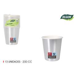 Embalagem de 10 copos de cartão prateados, 200 cm.