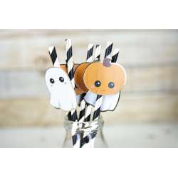 Conjunto de 10 palhinhas listradas em preto e branco para um Halloween divertido.