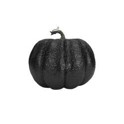 Esta abóbora preta com glitter é perfeita para criar uma decoração impressionante nas suas mesas de Halloween. O detalhe da sua cauda é especialmente realista, tornando-a um elemento de destaque.