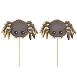 Apresentamos os espetos de cocktail com tema de Halloween. Cada unidade mede cerca de 10 cm, com um design de aranha de 5 cm x 4 cm.