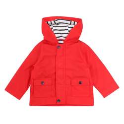 Veste de chuva com grande fecho.