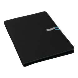 Inclui bloco de notas, passagem para caneta e diversos compartimentos.