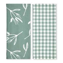 Ideal para a cozinha, este tecido é prático e versátil. Cada conjunto inclui dois panos em algodão natural - um com padrão xadrez e outro com estampa impressa.