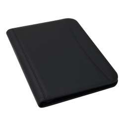 Inclui um compartimento interior com fecho éclair, uma calculadora e um bloco de notas. Além disso, possui uma prática argola para caneta e um compartimento exterior para itens adicionais.