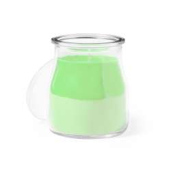 Bougie perfumada em frasco de vidro.